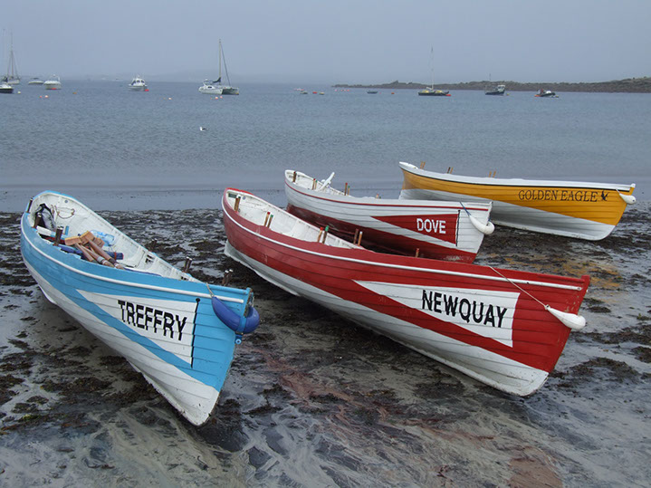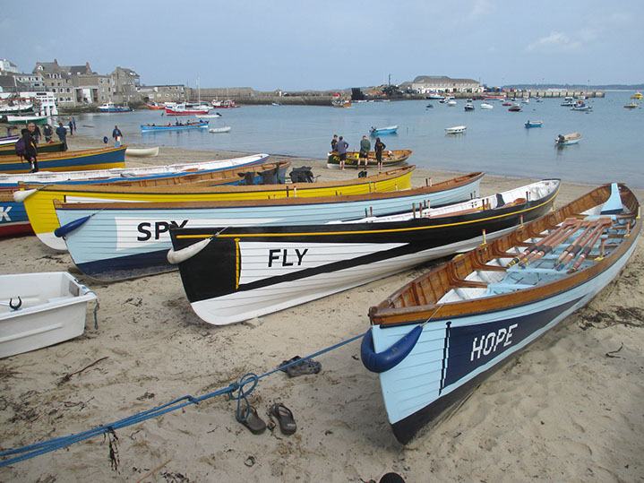Built in 1974 by Tom Chudleigh on St Marys, Isles of Scilly. She was the first copy of the Treffry and is named after the cellars just above the North Quay of the harbour. She is orange with a white rubbing strake and underside.